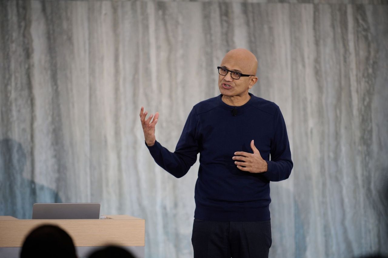 微軟首席執行官薩提亞·納德拉今年早些時候在華盛頓州雷德蒙德辦公室討論公司事務。圖片來源:Chona Kasinger/彭博新聞最新人工智能技術有多火熱?似乎已熱到足以讓投資者忽略當下真正驅動某些科技巨頭業務的因素。