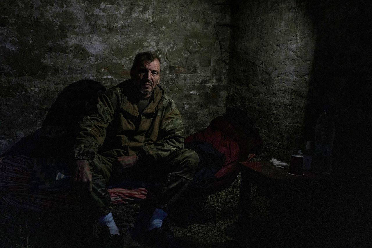 葉夫根尼·努津去年9月19日向烏克蘭軍隊投降後的照片。照片:《華爾街日報》Emanuele Satolli攝他最終流落到烏克蘭東部巴爾文科沃市附近的一個村莊,被交由綽號"岩石”、現年33歲的尤里·哈爾卡維少校所率部隊看管。士兵們不知如何處置努津——烏克蘭官方拒絕接收他,他沒有身份證件,也不具備戰俘交換價值。