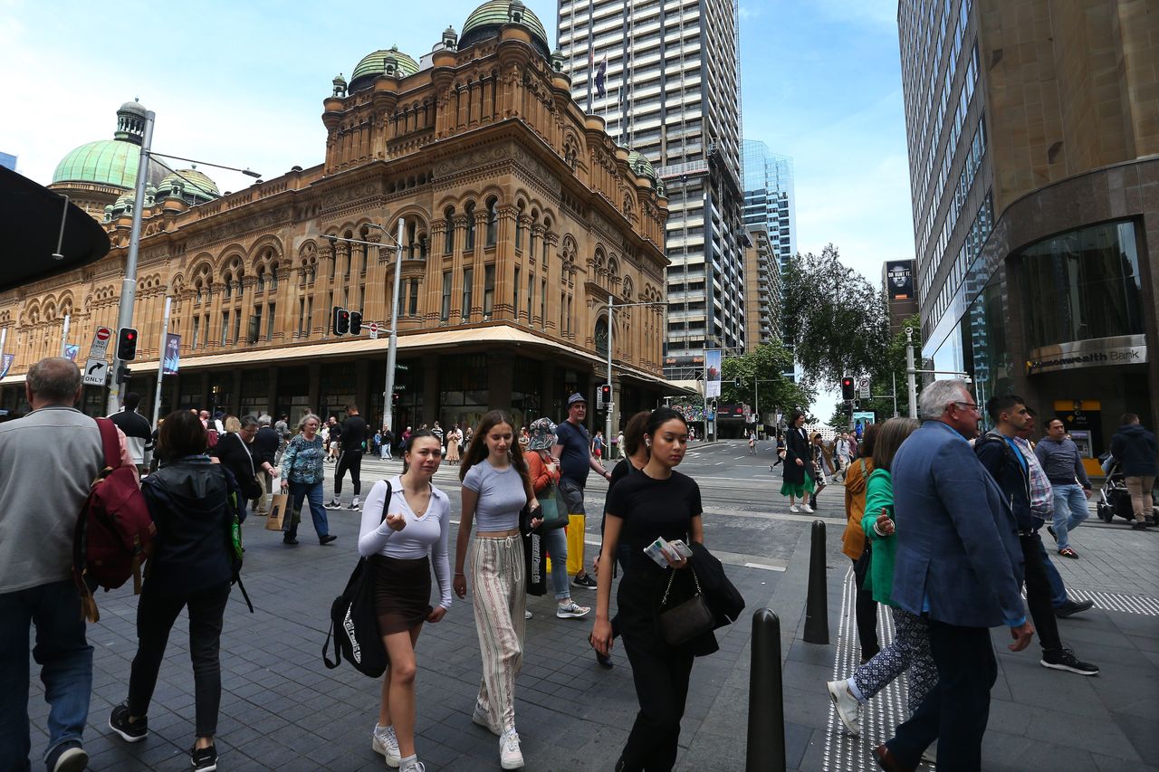 行人沿着悉尼喬治街前行。圖片來源:Lisa Maree Williams/Getty Images悉尼——澳大利亞的通脹困境似乎已在2022年最後幾個月見頂,數據顯示,過去一年生活成本飆升的增速在當季有所放緩。