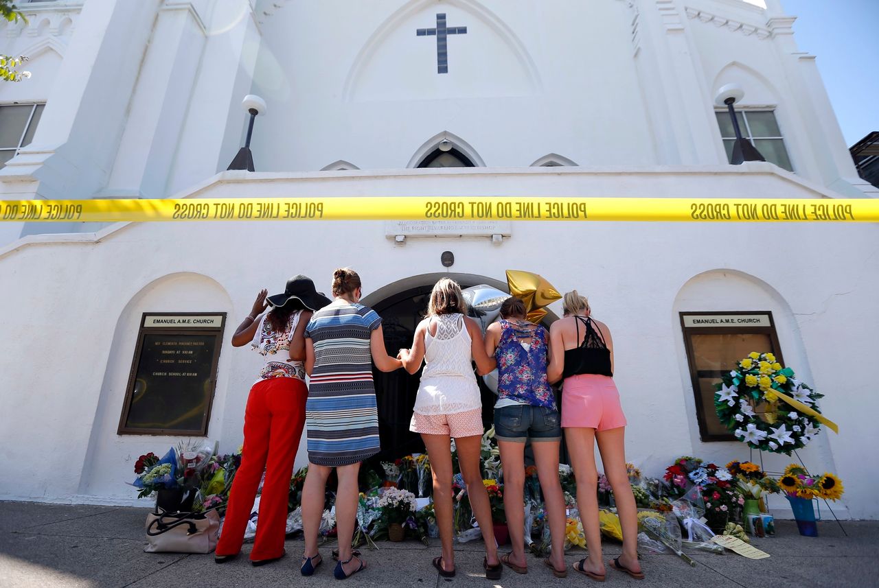 2015年南卡羅來納州查爾斯頓市以馬內利非洲衞理公會教堂大規模槍擊事件後的臨時紀念地。照片:斯蒂芬·B·莫頓/美聯社為了證明在墮胎問題上達成更多共識是可能的,黑莉女士提到了2015年查爾斯頓市以馬內利非洲衞理公會教堂的大規模槍擊事件,一名白人槍手在聖經學習班上殺害了九名黑人,經過多年的爭議,這促使南卡羅來納州議會大廈移除了邦聯旗幟。