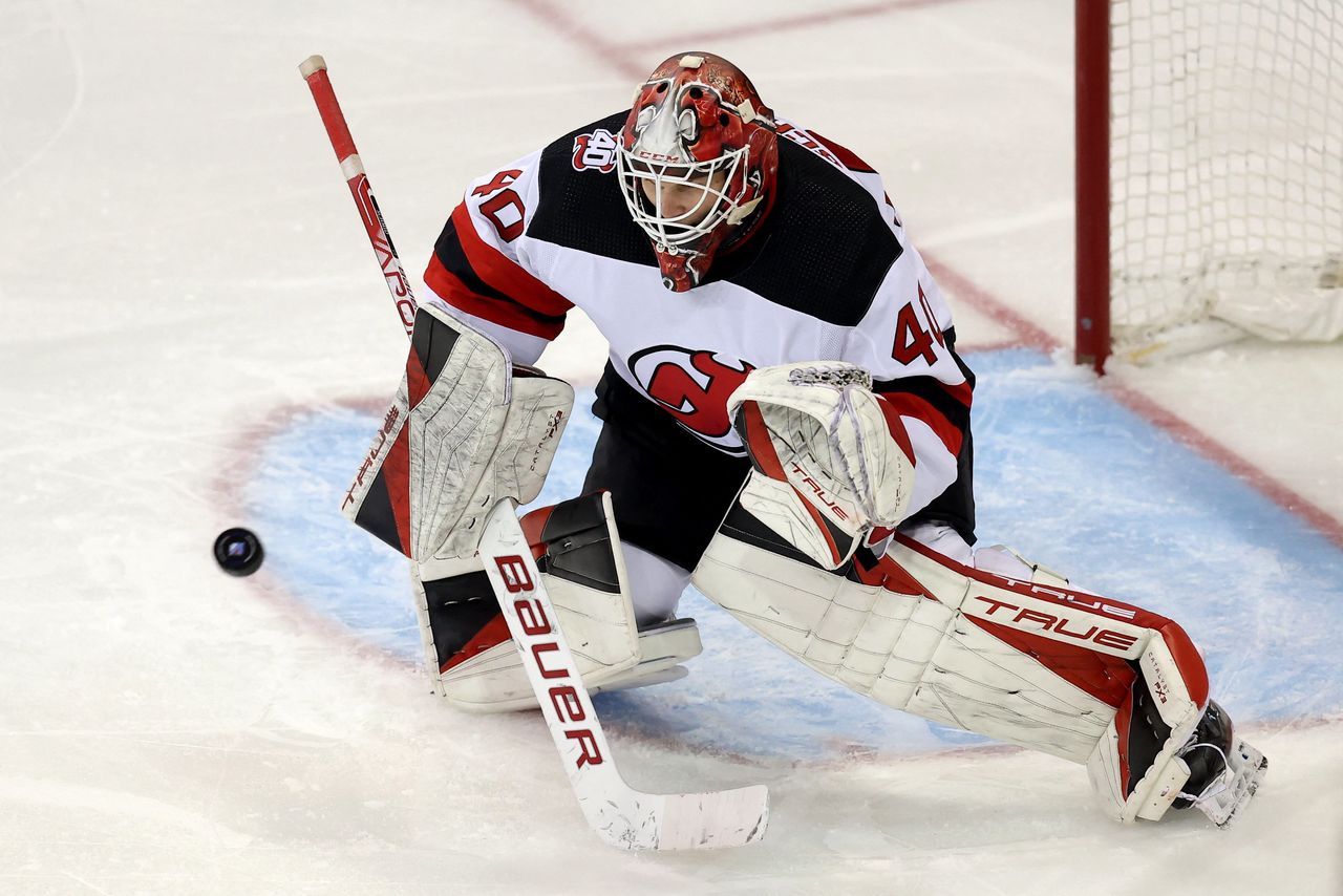 換上阿基拉·施密德擔任守門員幫助新澤西魔鬼隊扳平了對紐約遊騎兵隊的系列賽。圖片來源:布拉德·彭納/今日美國體育 via 路透社這次換人立竿見影。週六以2-1加時勝出並完成35次撲救後,施密德在週一晚再度鎮守球門。開場不到三分鐘,休斯的腕射就突破了遊騎兵隊維辛納獎得主門將伊戈爾·謝斯特金的十指關,讓花園球館鴉雀無聲。雖然遊騎兵隊在第三節初段追平比分,但六分鐘後新澤西隊再度領先。終場前的空網球將比分鎖定為3-1。