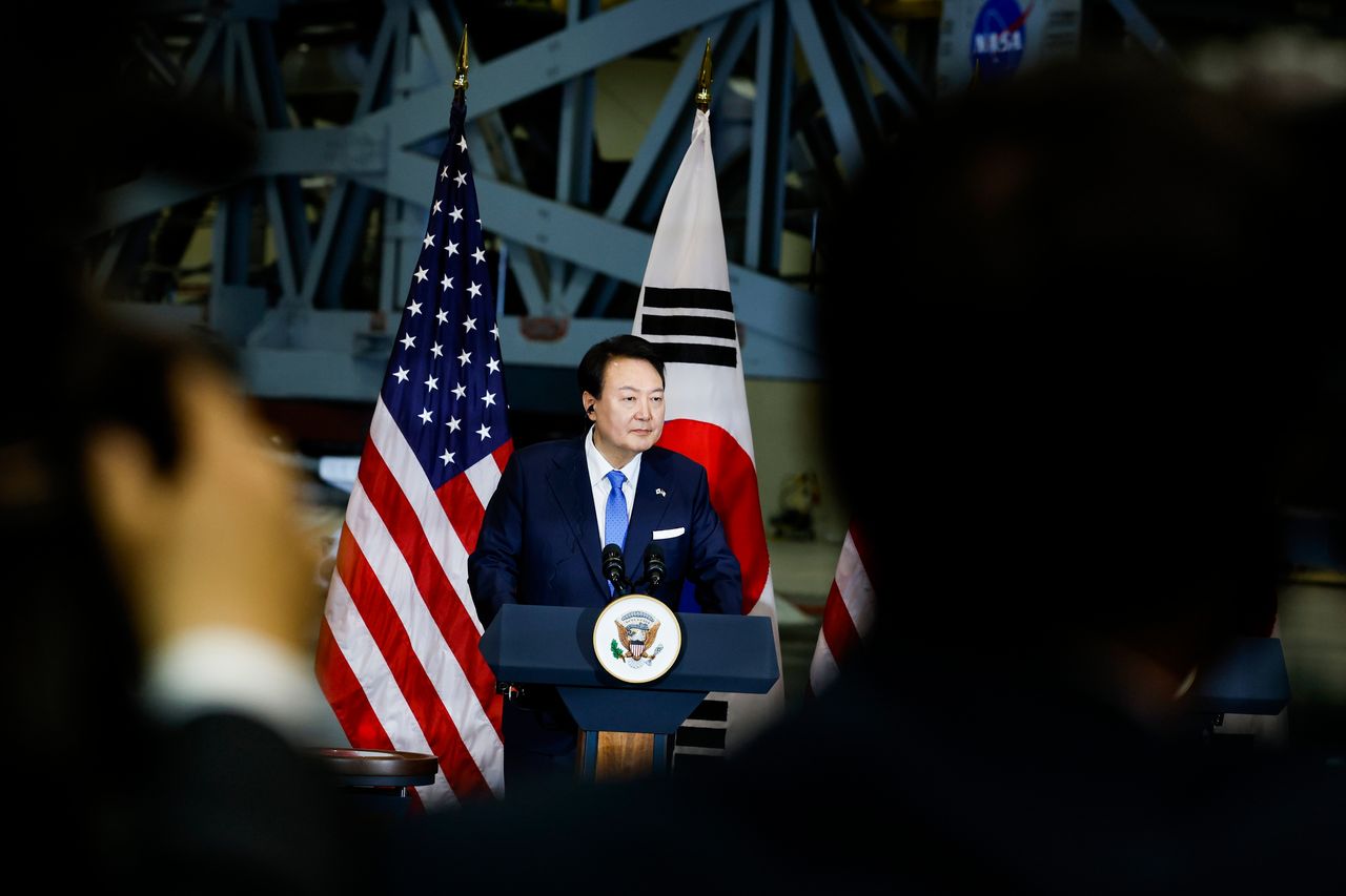 韓國總統尹錫悦週二在馬里蘭州格林貝爾特參觀美國宇航局設施後發表講話。照片:Anna Moneymaker/Getty Images“朝鮮半島的可持續和平不會自動實現,”尹錫悦週三表示,並補充説,威懾平壤取決於“壓倒性力量的優越性,而不是基於對方善意的虛假和平。”