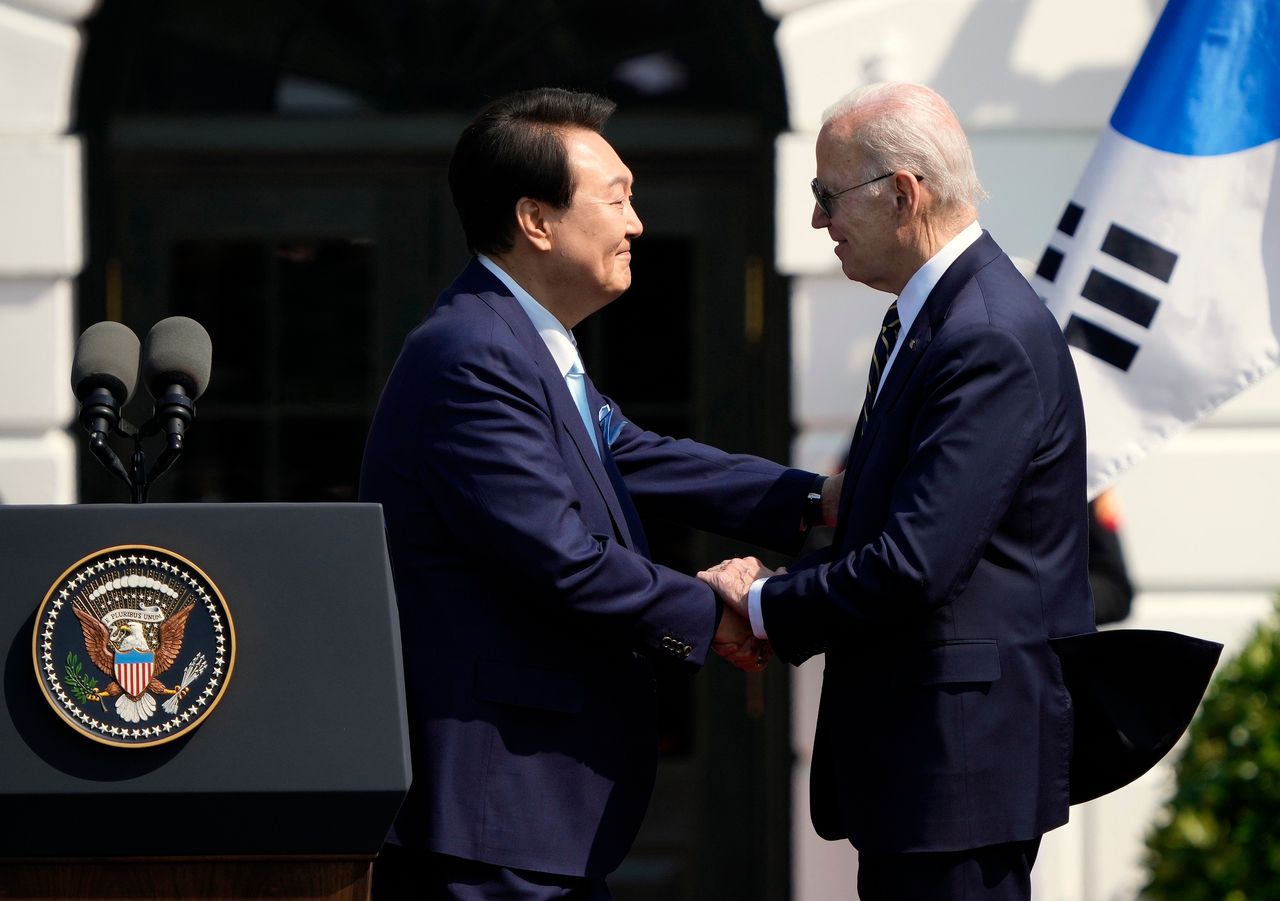華盛頓——美國總統拜登與韓國總統尹錫悦週三在白宮峯會後的聲明中表示,美國同意在針對朝鮮攻擊的潛在核反擊磋商中給予首爾更大話語權,作為交換條件,韓國承諾不發展本國核武器。