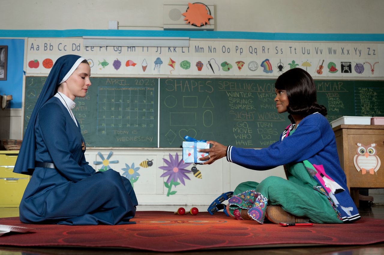 **林德洛夫:**我全身的每一個細胞都在説:“我們不能那樣做。那不是我們一直在討論的劇集。”但塔拉是節目統籌,我的工作是支持她的願景。在即興創作的世界裏,這是一個“是的,而且”的時刻。這成為了讓我對這部劇感到興奮的原因。我離修女的生活方式選擇相去甚遠,但我知道愛上一個人是什麼感覺。