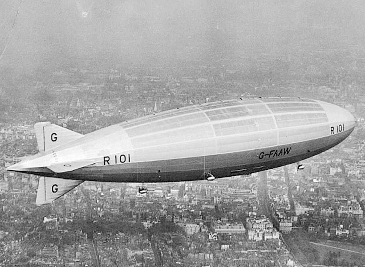 R101以R38為藍本,此時其設計理念已轉向帝國象徵。如同英國廣播公司(成立於1922年),飛艇被寄予維繫大英帝國的厚望。橫跨全球的飛艇服務構想最初由塔斯馬尼亞政府總代理提出。1924年,空軍大臣克里斯托弗·湯姆森下令建造兩艘飛艇。由維克斯工程公司承建的"資本主義"R100採用傳統設計;而通過合同委託政府建造的"社會主義"R101則充滿"實驗性",配備動力方向舵、升降舵、柴油發動機、恆温客艙以及吸煙室。