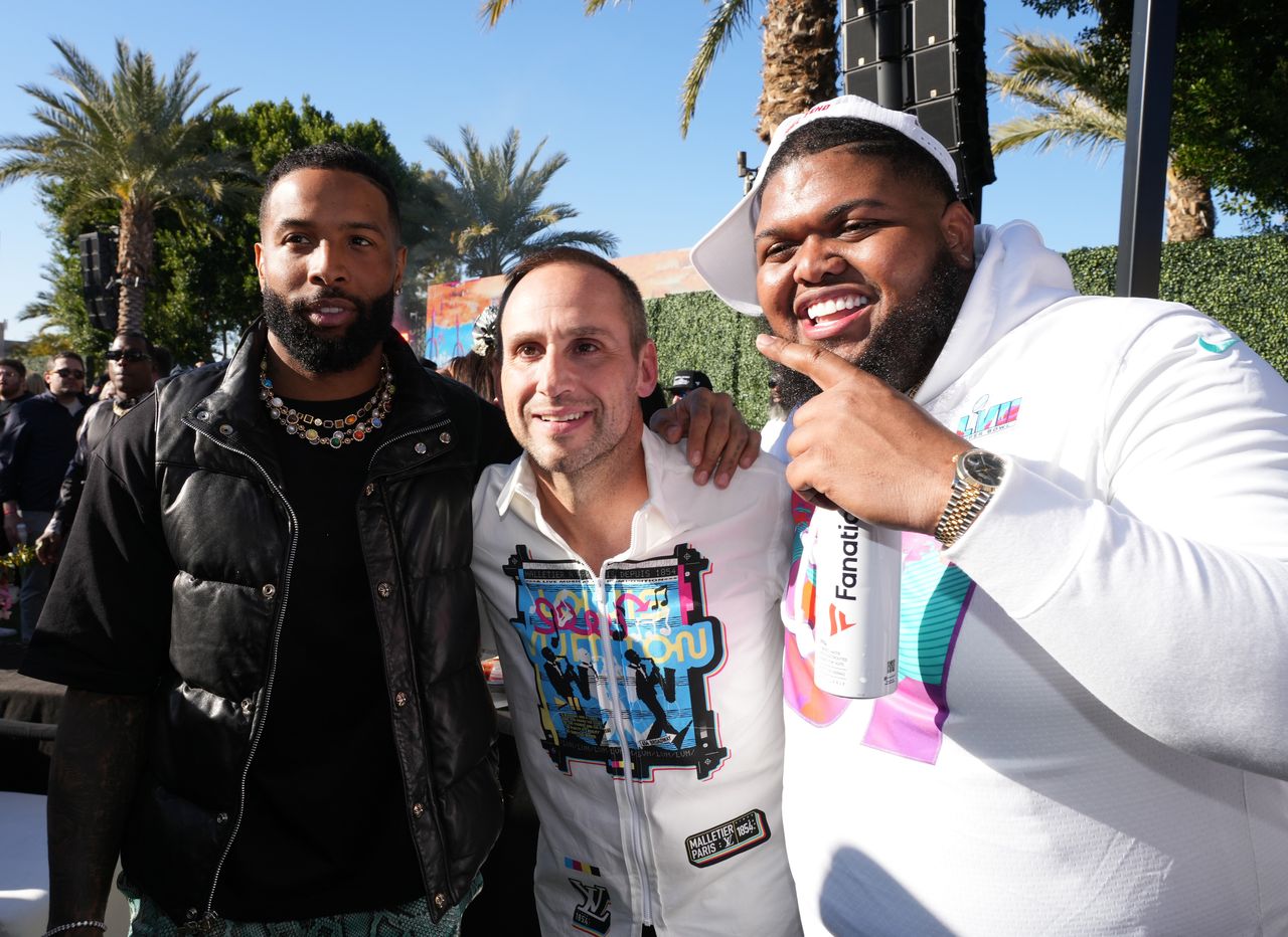 Fanatics首席執行官邁克爾·魯賓(左為身着黑色上衣的美式橄欖球運動員小奧德爾·貝克漢姆,右為網絡紅人Druski)出席公司二月份的年度超級碗派對。圖片來源:凱文·馬祖爾/Fanatics供圖在費城地區長大的魯賓先生8歲就開啓了創業之路,最初售賣蔬菜種子,後來擴展到自制文具和剷雪服務。12歲時,他在父母的地下室創辦了滑雪板調試業務,最終發展成滑雪裝備商店。他在維拉諾瓦大學就讀一學期後輟學專注事業,隨後轉向其他商業領域。