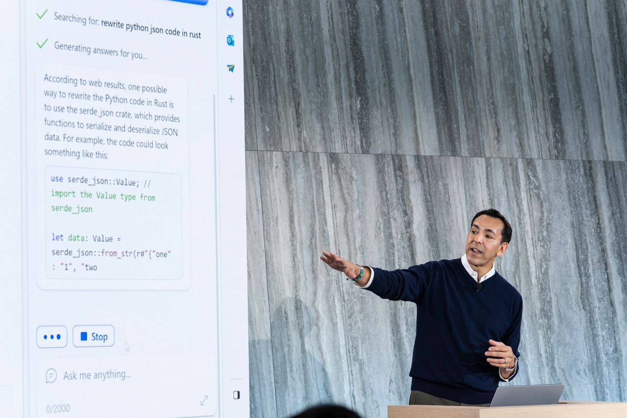 一位微軟高管展示該公司必應搜索引擎和Edge瀏覽器與OpenAI的整合。圖片來源:Stephen Brashear/Associated Press### 責任與利潤分配