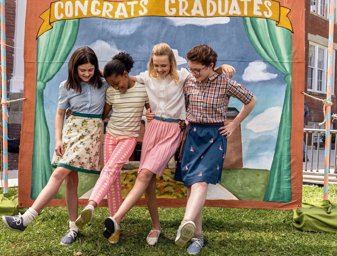 在《上帝,你在嗎?我是瑪格麗特》中,瑪格麗特和她的朋友們在青春期的危險中摸索前行。圖片來源:獅門影業/埃弗雷特收藏提供在改編自美國出版界標誌性成長小説《上帝,你在嗎?我是瑪格麗特》的電影片場拍攝中,有一個親密的場景。這一幕講述了主角第一次將衞生巾放入內褲的經歷。