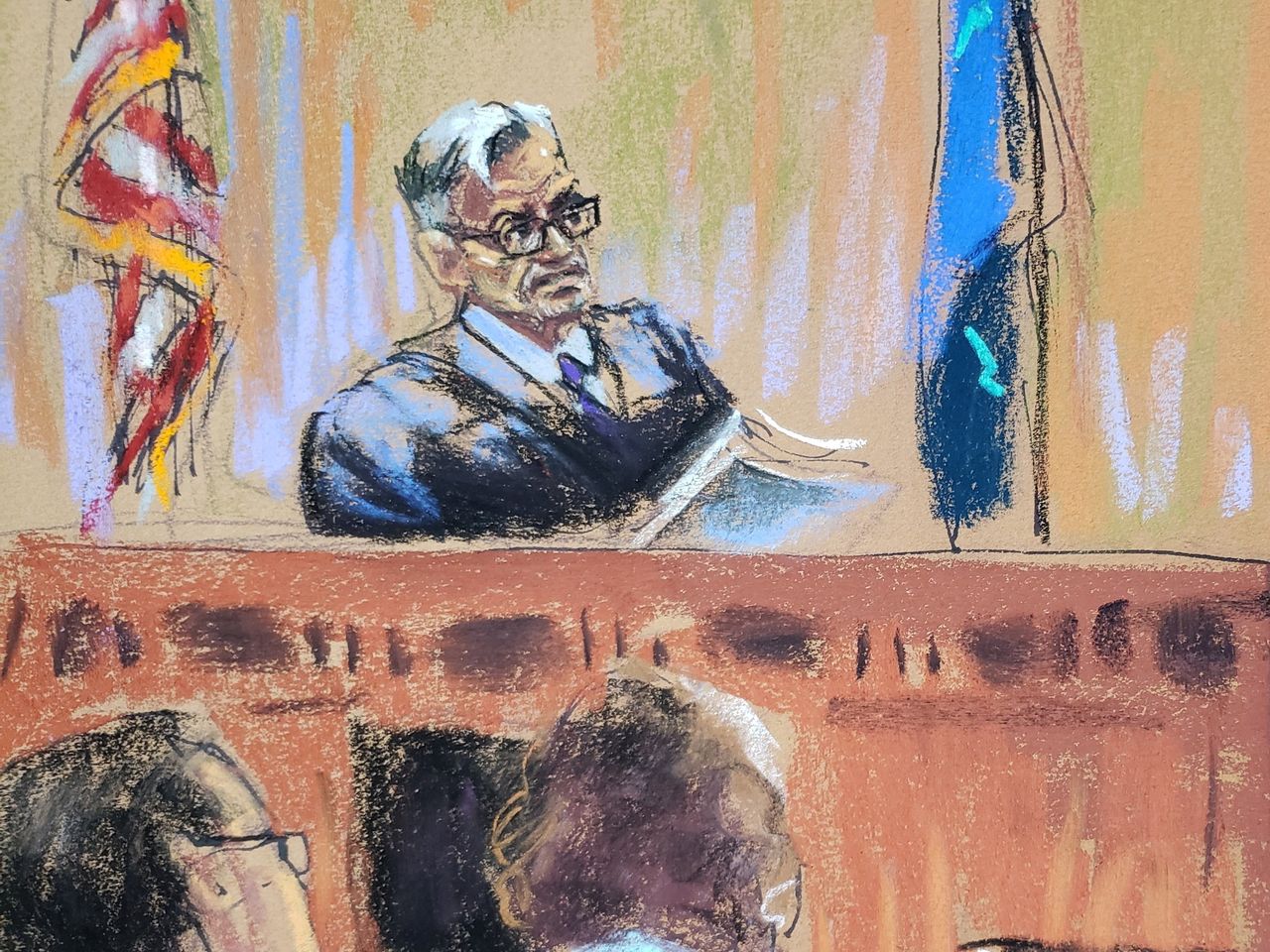 法庭素描顯示,胡安·默欽法官去年在曼哈頓刑事法院特朗普集團刑事税務審判中對陪審團進行指示。圖片來源:JANE ROSENBERG/REUTERS據知情人士透露,紐約最高法院法官胡安·默欽被指派主持對前總統唐納德·特朗普的封口費起訴案,原因是他曾負責過涉及這位前總統及其公司的訴訟,但這段歷史可能會使訴訟程序複雜化,並讓他面臨更多來自特朗普的攻擊。