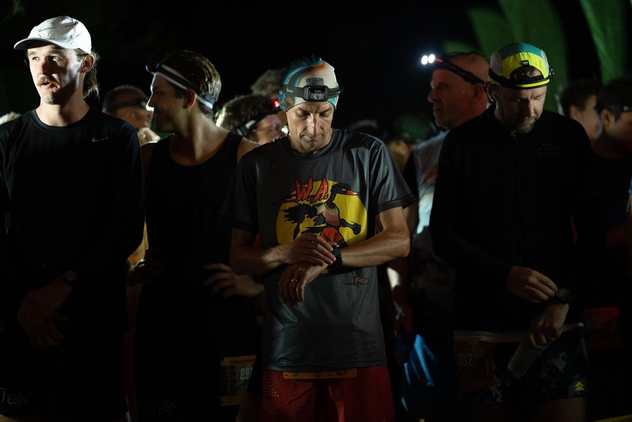 菲爾·戈爾參加三月份的一場賽事。圖片來源:馬爾科·諾埃菲爾·戈爾心目中的趣味跑步是"後院超馬”——選手每小時需完成一圈約4英里多的賽程,直至最後一人勝出。這位36歲跑者在澳大利亞西部偏遠地區環湖首秀時,經過39小時鏖戰後倒在黑暗中,最終在妻子跪地耳語鼓勵下,才掙扎着從磚砌小徑爬起完成最後一圈。此後他創下連續奔跑76小時的紀錄,並拒絕參加常規馬拉松,認為賽程"太短”。