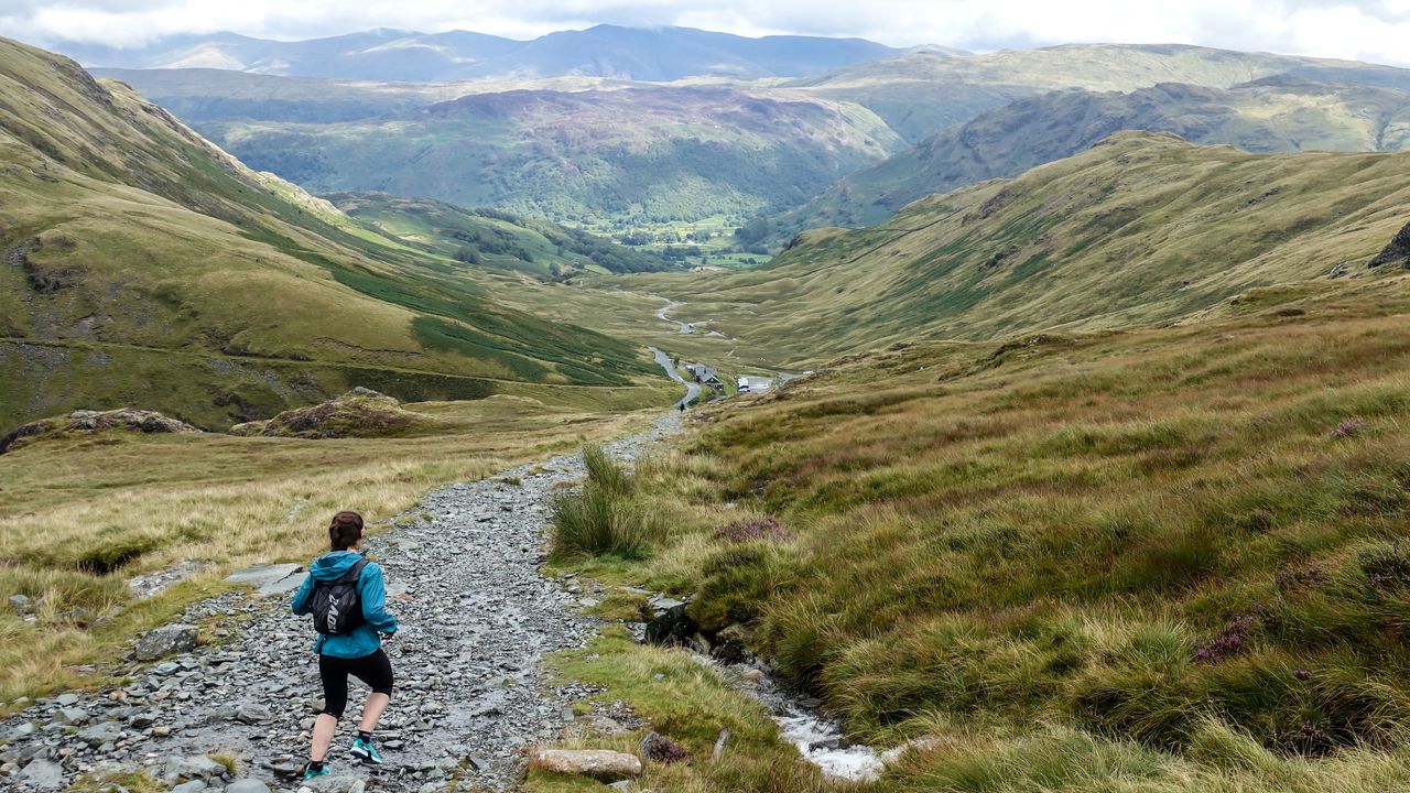 一位跑者參加英國穿越小徑海岸至海岸徒步旅行。圖片來源:克里斯·奧德/穿越小徑奧德表示,他的客户大多是35歲至65歲之間的專業人士。他認為,社交和觀光對他們來説至少和跑步一樣重要。