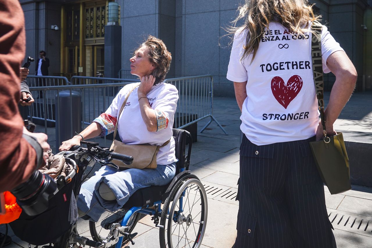 約20名倖存者及遇難者家屬在曼哈頓法院的量刑聽證會上作出感人陳述,多數人身着印有"團結更強"字樣的統一T恤。