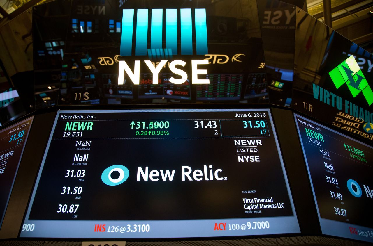 幾年前紐約證券交易所屏幕上顯示的New Relic股票信息。圖片來源:Michael Nagle/Bloomberg News私募股權公司Francisco Partners與TPG 正聯手推進一項價值逾50億美元的收購軟件公司New Relic的競標,據知情人士透露。