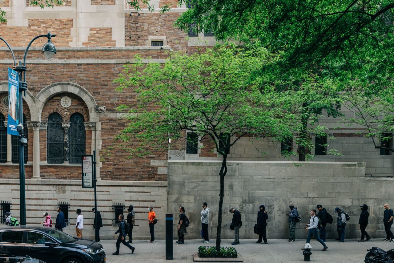 本月早些時候,人們在曼哈頓聖巴塞洛繆教堂外的施粥處排隊等候。