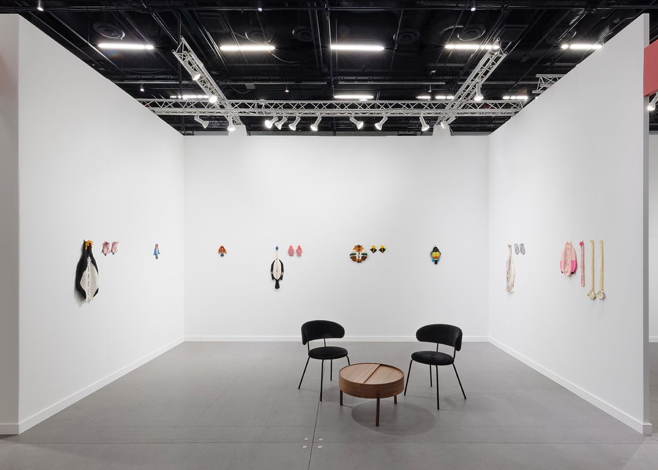 弗里茲紐約藝博會上Tina Kim畫廊展位現場,前景為Mire Lee的作品攝影:Tina Kim畫廊紐約