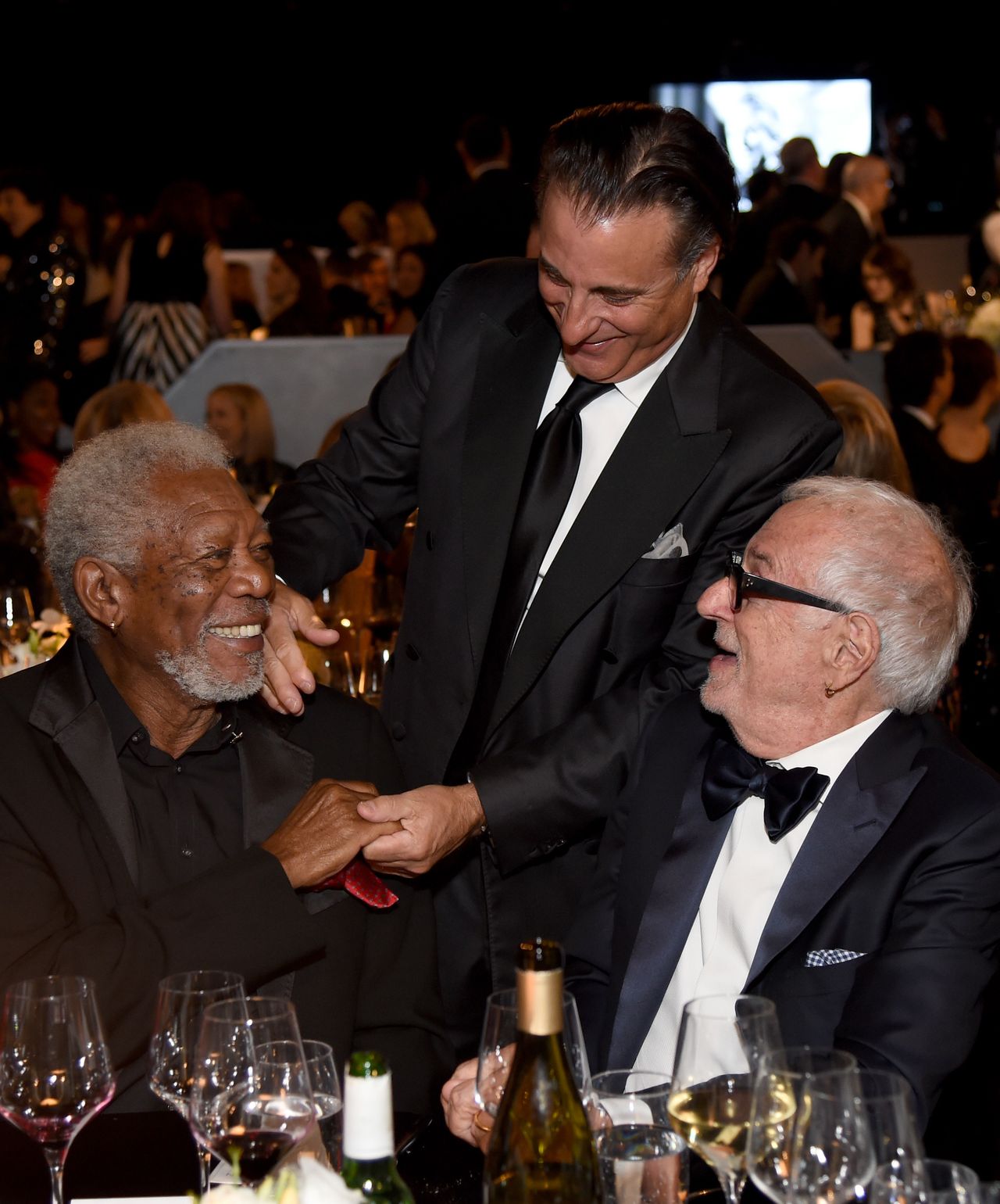 摩根·弗里曼、安迪·加西亞和弗雷德·斯佩克特在2017年。照片:邁克爾·科瓦克/美國電影學會提供這位演員是斯佩克特合作時間超過許多CAA經紀人年齡的幾位客户之一。1975年,他接到斯佩克特的電話,後者讀到了對德維託執導的短片《蔬菜湯》的熱烈評論。