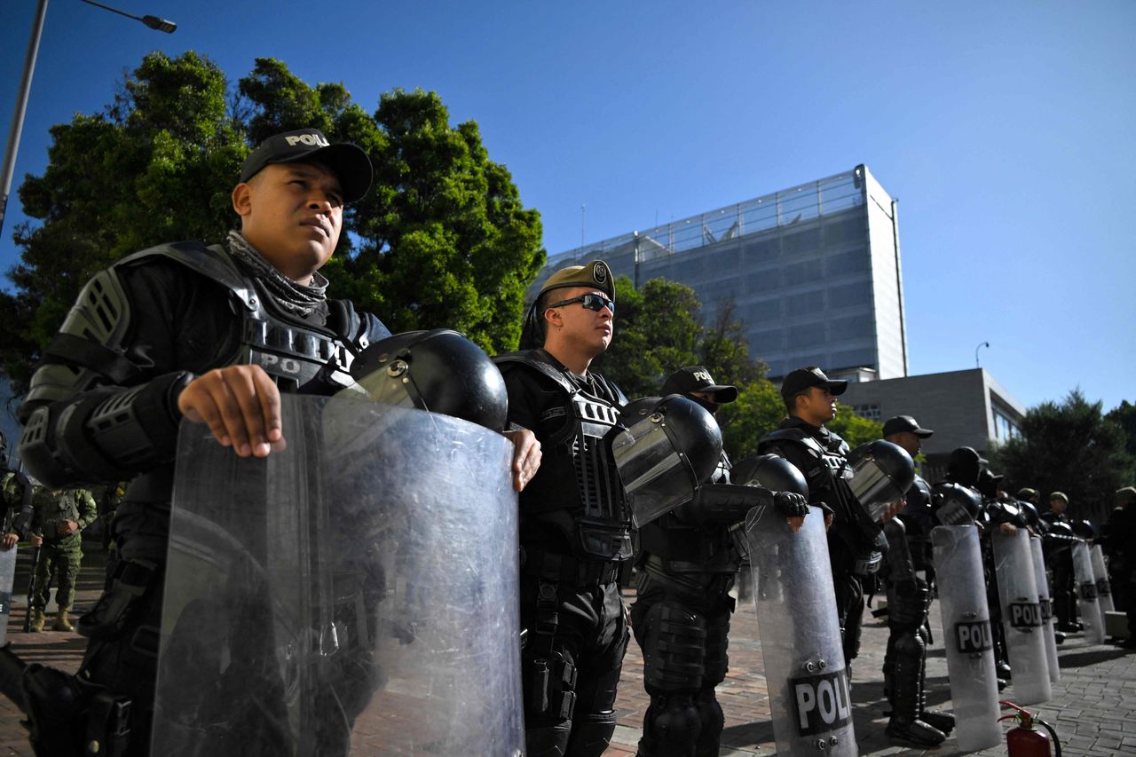 厄瓜多爾總統吉列爾莫·拉索發佈解散立法機構的法令後,基多國民議會外的警察。照片:rodrigo buendia/法新社/蓋蒂圖片社厄瓜多爾軍方領導層支持拉索,在一段發佈於網上的視頻中表示,關閉國民議會是憲法合法的,並且武裝部隊不會容忍暴力動盪。