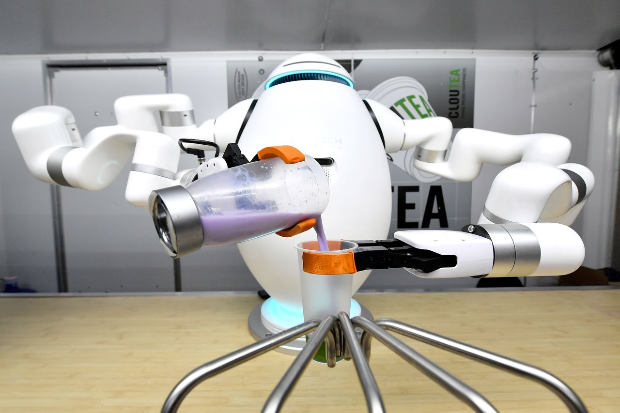 2023年3月,拉斯維加斯某行業展會上,Richtech Robotics公司製造的機器人ADAM正在製作珍珠奶茶。圖片來源:夜店與酒吧媒體集團/Getty Images日前我在醫院探病時,差點迎面撞上一個名叫Moxi的勤快員工。這個身高僅四英尺多、眼睛閃閃發亮的機器人,承擔着遞送藥品和實驗室樣本的平凡工作。病人們對她讚不絕口,但在加州蒙特雷半島社區醫院的員工中,她卻飽受冷眼。
