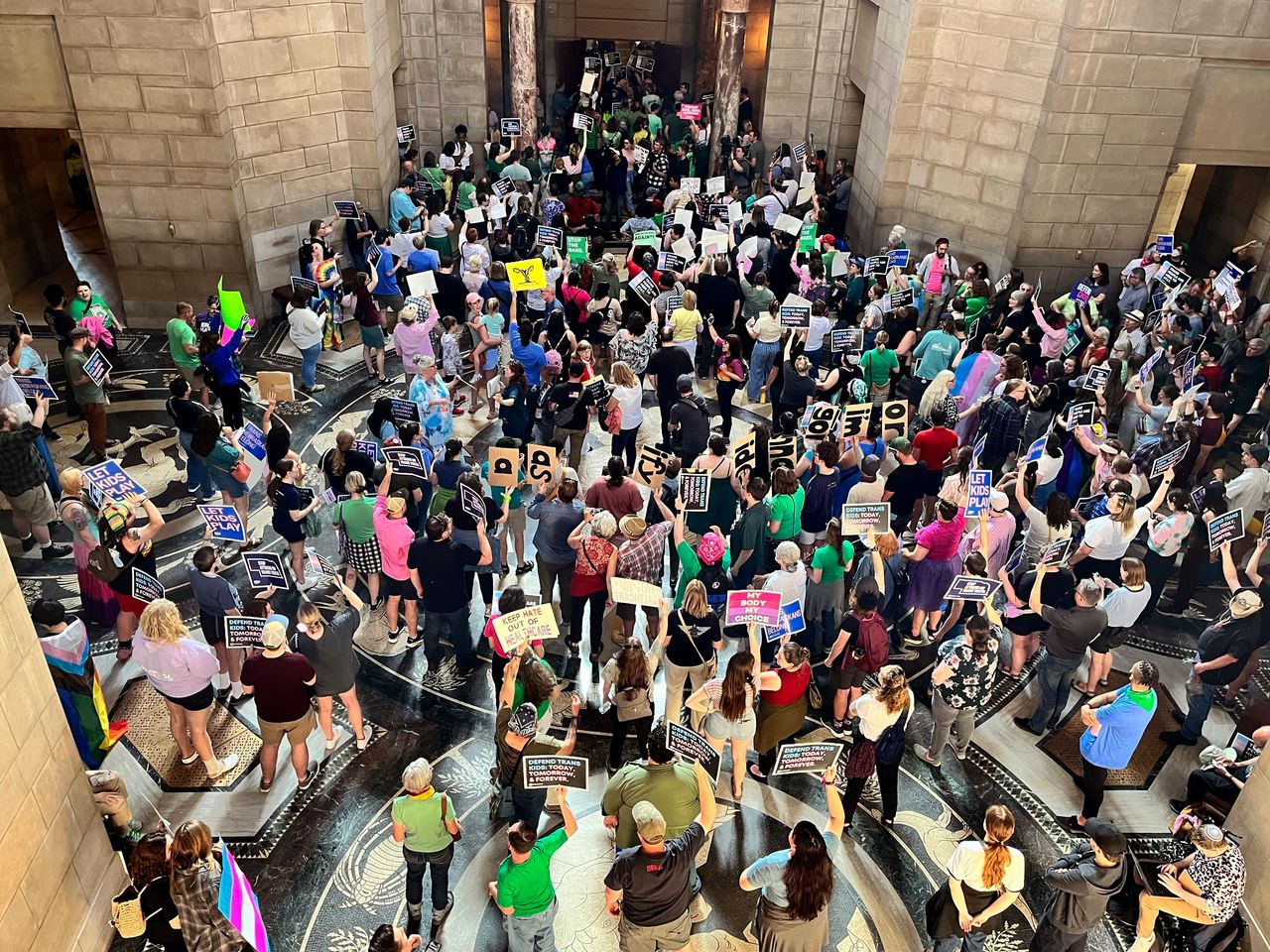 該州一院制議會於週二修訂了限制青少年性別肯定醫療的法案,將懷孕12周後的大部分墮胎禁令納入其中。另一項禁止懷孕六週後墮胎的提案已於四月流產。在會議最後階段,立法策略將兩項議題合併為同一法案。