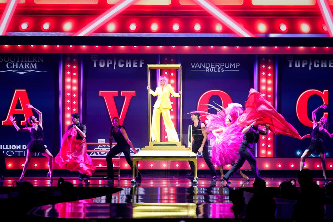 來自Bravo真人秀《範德普規則》的阿麗亞娜·馬迪克斯出現在NBC環球於無線電城音樂廳舉辦的舞台秀中。圖片來源:拉爾夫·巴瓦羅/NBC環球今年電視行業面向廣告商舉辦的年度華麗推介周活動氛圍有所不同。