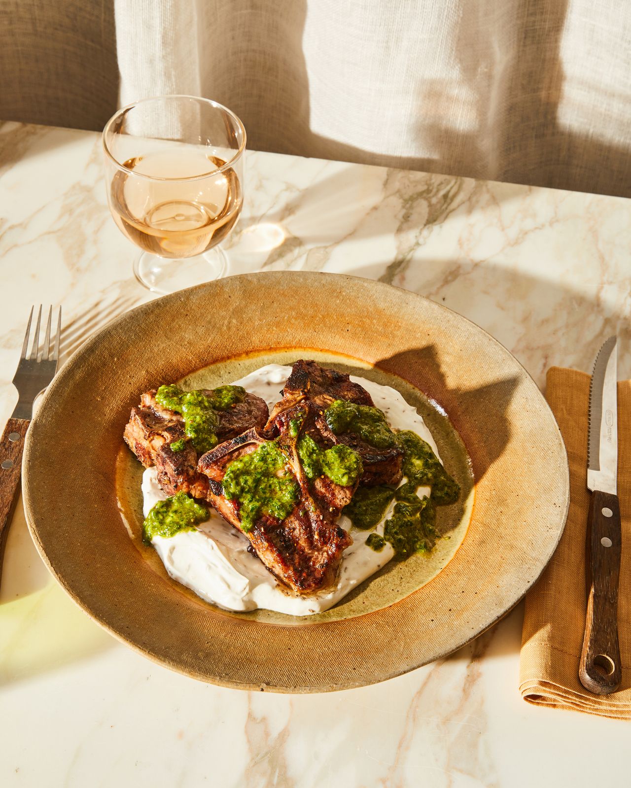 照片:Linda Xiao為《華爾街日報》拍攝,食物造型由Pearl Jones負責,道具造型由Marina Bevilacqua負責### 春日香草烤羊排配孜然酸奶