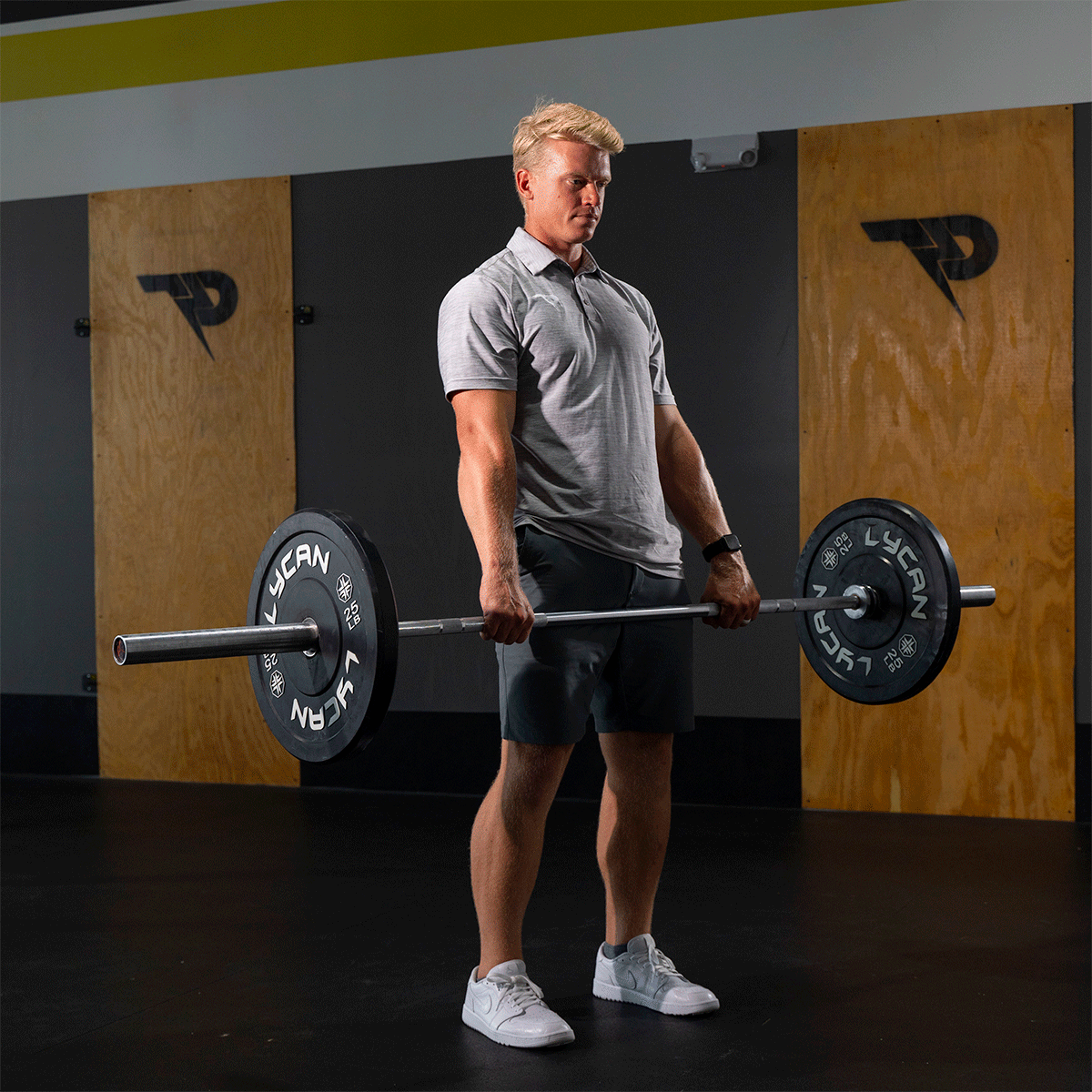 帕裏什用槓鈴進行羅馬尼亞硬拉。### 臀橋