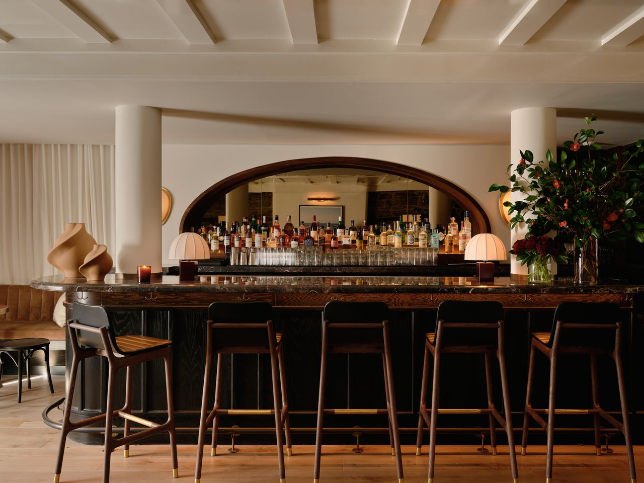 邦德街Jac’s酒吧的枱球桌。攝影:威廉·傑斯·萊爾德這家氛圍輕鬆的雞尾酒吧在紐約時裝週期間開業,併為Rodarte品牌舉辦過派對,提供由Wildair和Contra餐廳背後的廚師團隊傑里米亞·斯通與法比安·馮·豪斯克·瓦爾鐵拉制作的小食,設計師克里斯汀·加喬形容其大地色系裝潢具有"90年代基調”。她説,靠近房間後部的米色枱球桌"讓人回想起超模真正稱得上超模的那個性感年代,她們打枱球、抽煙、盡情享樂”。