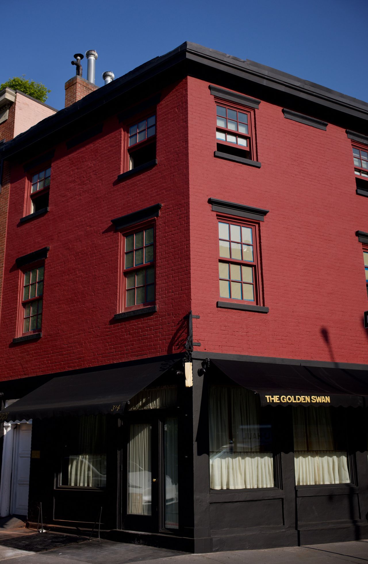 西村的黃金天鵝。攝影:馬克斯·戈德曼攝本月,44歲的阿布拉姆奇克以舊"斑點豬"餐廳空間新管理者的身份重返社區——該餐廳自2004年起便是該地區的地標——此前他從Jay-Z的SCC格林尼治房地產公司購得了這棟擁有逾百年曆史的建築。他在此開設的新店"黃金天鵝”(預計5月24日開業),得名於西村一家聲名狼藉的酒館,那裏被親切地稱為"地獄洞”,劇作家尤金·奧尼爾和20世紀初形形色色的酒鬼曾是常客。1928年為修建第六大道地鐵,該酒館被拆除。
