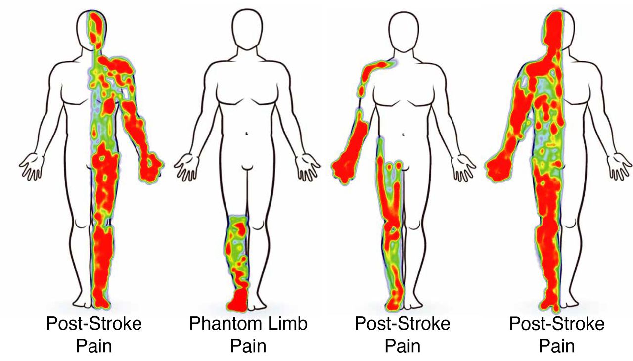 研究期間,三位年齡在50多歲的參與者在中風後開始感到身體一側有灼燒性疼痛。第四位60多歲的女性參與者右腿膝蓋以上被截肢,卻仍能感受到缺失的小腿和腳部有灼燒和擠壓般的幻肢痛。