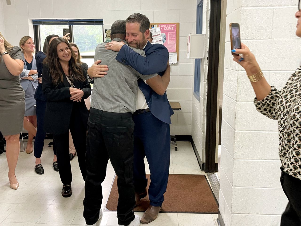 韋恩·伯吉斯週二在田納西州普拉斯基的吉爾斯縣警長辦公室擁抱他的律師,田納西州無罪項目的傑森·吉什納。照片:瑪麗亞·蒂姆斯/《華爾街日報》哈蘭的缺陷工作產生了雙重影響。庫珀最近起訴了一名男子,指控他在20年前謀殺了自己的幼子,而哈蘭錯誤地認定該兒童2001年的死亡是意外。