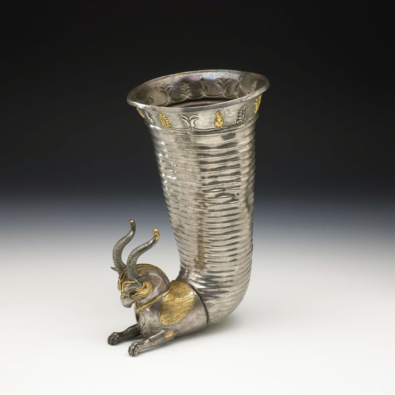 展出的來通杯折射出波斯人對狩獵與神話的熱忱:瞪羚與帶翼野山羊;騎手(可能是總督)在追逐中前傾身軀的駿馬;頭角鎏金、精緻兇猛的格里芬。格里芬後來融入了希臘神話。古典希臘文明並非如狄俄尼索斯般孤立地從宙斯大腿誕生。“凡希臘人取自蠻族之物,必精益求精”,雅典人在《伊庇諾米篇》(據信為柏拉圖弟子所著的對話錄)中如是説。