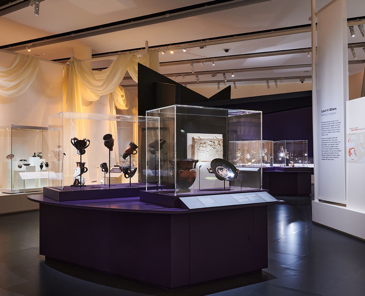 懸掛的織物將展廳分隔成三個帳篷狀區域。第一部分展示阿契美尼德宮廷隨軍隊西傳的奇異美學;第二部分追溯其對雅典的影響;第三部分則展現雅典從城邦轉變為帝國後,如何在亞歷山大大帝(公元前336-323年在位)統治時期將融合風格反向傳播至東方。