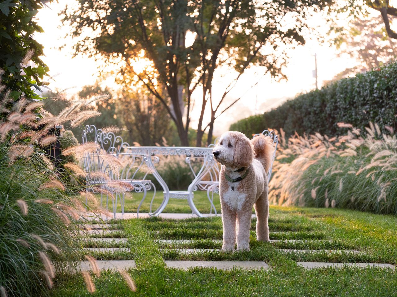 在康涅狄格州的老格林尼治,安格斯在景觀設計師賈尼斯·帕克設計的庭院中留影,這裏的一小塊草坪草與周圍較高的噴泉草形成鮮明對比。攝影:小尼爾·蘭迪諾草坪專家表示,不完美的草坪對所有人都更有利。三葉草能吸引傳粉昆蟲,減少修剪頻率可促進根系深扎從而減少灌溉需求,不使用化學藥劑意味着不必擔心毒害喜歡在草地上打滾的寵物或家人。