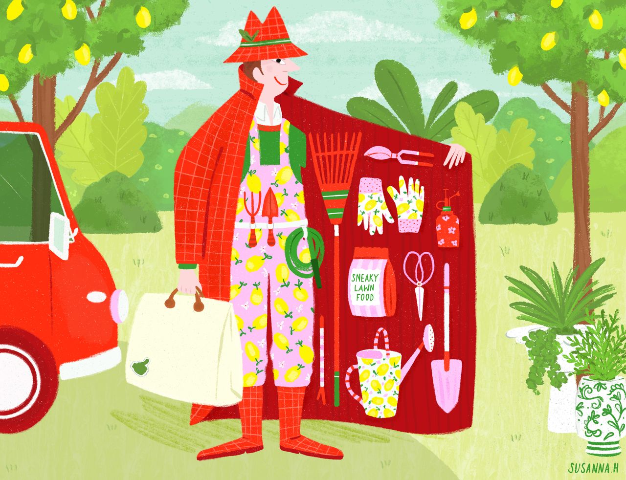 隱秘的草坪護理 作者想坦白她在屋後保留的那片小草坪。插圖:蘇珊娜·哈里森**我的前院“草坪”**根本算不上草坪。這裏沒有一株耗水量大的草皮草。我像聖人一樣標榜美德,如果特蕾莎修女是個園丁,她也會對我自愧不如。