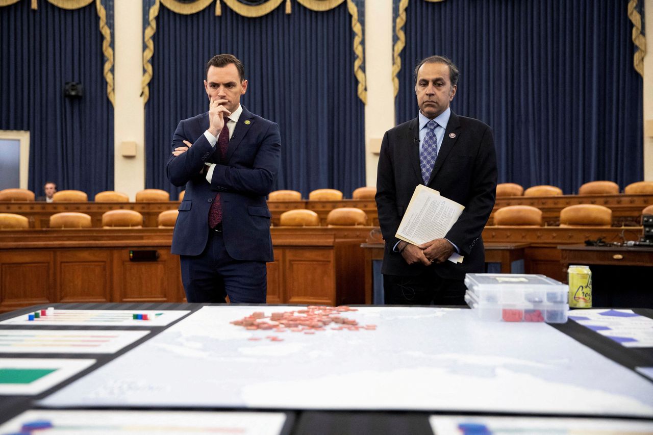 專注於中國的眾議院特別委員會主席、威斯康星州共和黨眾議員邁克·加拉格爾與該委員會最高民主黨人、伊利諾伊州眾議員拉賈·克里希納莫西上個月觀看了一場戰爭模擬。圖片來源:AMANDA ANDRADE-RHOADES/REUTERS美國與中國共產黨戰略競爭特別委員會無權制定法律。這意味着該小組必須與立法委員會合作,才能將其建議轉化為立法。加拉格爾週三重申了他這樣做的決心。