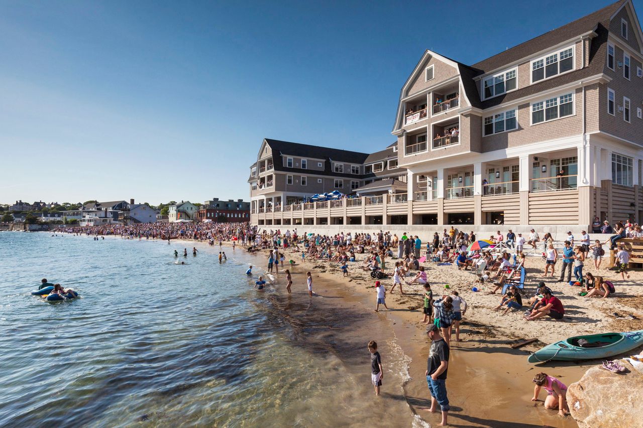 大家揮手!海灘遊客在博波特酒店附近享受夏日時光。照片:Alamy住宿推薦:俯瞰格洛斯特港的博波特酒店擁有航海主題客房、屋頂泳池,是觀賞"油膩杆"比賽的絕佳位置。每晚254美元起。位於城鎮岩石嶙峋的背海岸線、坐擁大西洋壯麗景色的亞特蘭蒂斯海濱酒店,步行即可到達熱門的好港海灘。每晚236美元起。漁夫紀念碑對面的海港景觀酒店,經可開合橋短途漫步即可抵達斯泰吉堡公園。每晚229美元起。