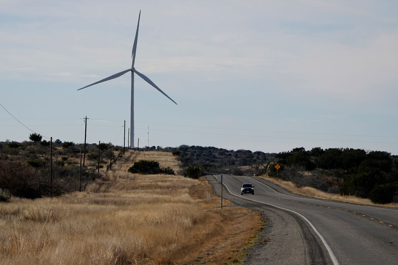 一座風力發電機矗立在德克薩斯州德爾里奧附近的景觀中。圖片來源:埃裏克·蓋伊/美聯社