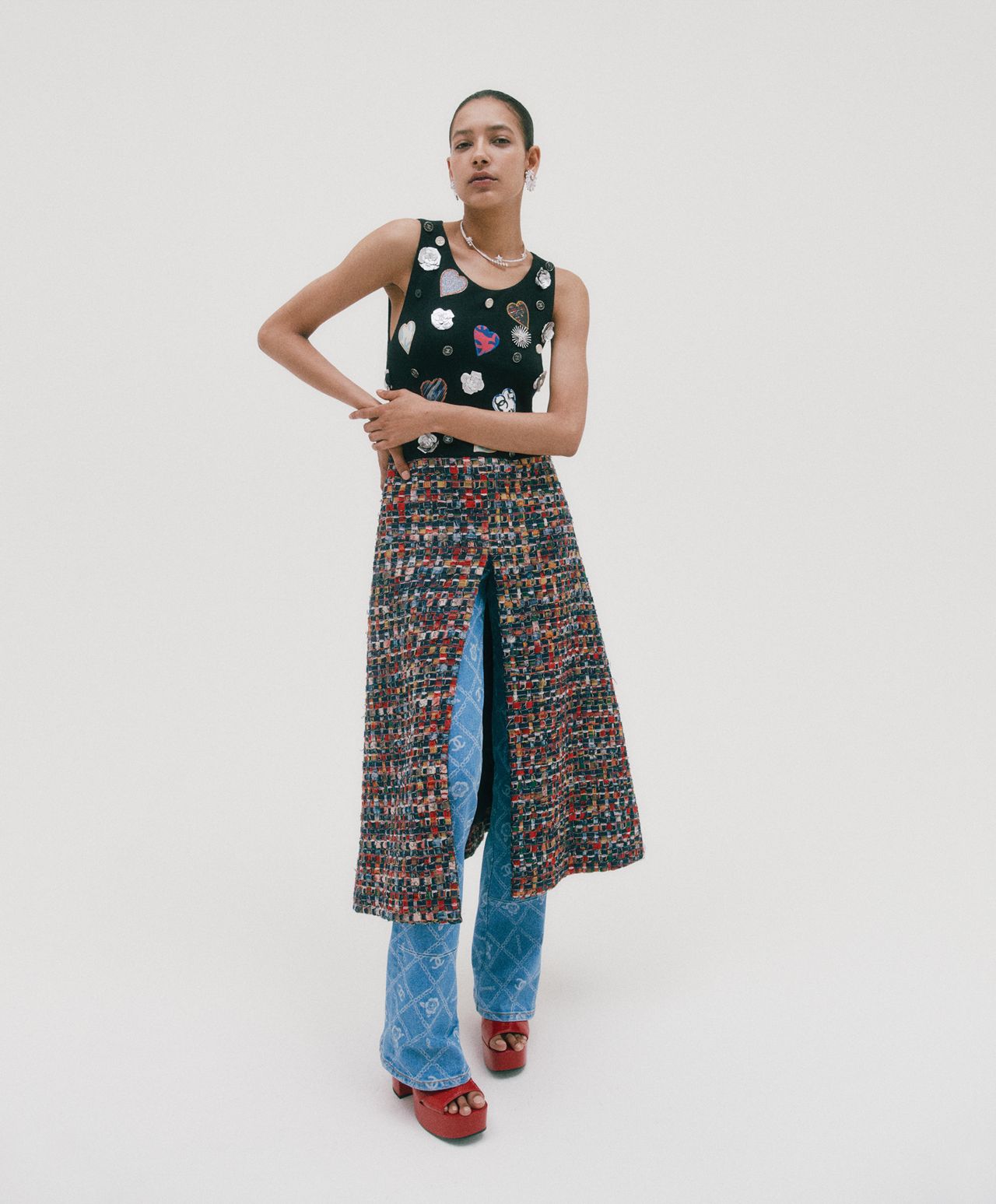 當牛仔邂逅藍寶石與鑽石。格拉夫高級珠寶耳環、項鍊、戒指及手鍊,價格請諮詢,更多信息見Graff.com;Marc Jacobs設計的芬迪上衣1,550美元,半裙1,550美元,官網Fendi.com可購;芬迪手袋5,700美元,芬迪精品店有售。