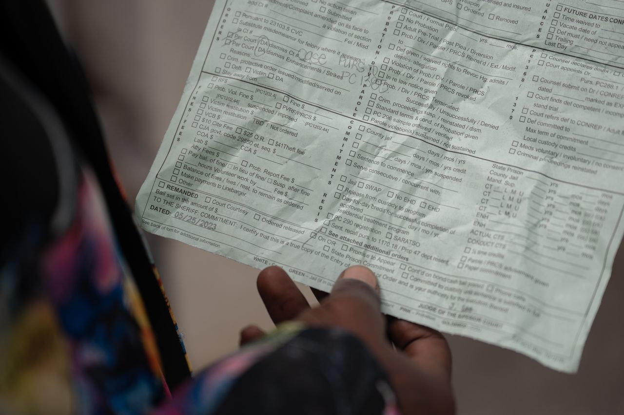 亞當·卡彭特手持撤銷指控的法律文件。過去三十年間,許多試圖逃離奧克蘭和舊金山等城市高房價與高犯罪率的黑人家庭遷至安條克。最新人口普查數據顯示,該市白人佔36%,黑人佔20%。