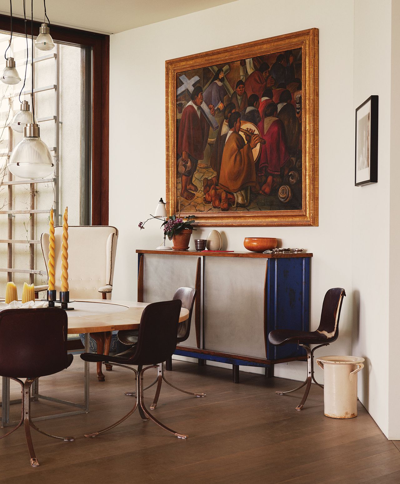客廳裏掛着一幅波波·莫羅面具,餐廳深處則擺放着1928年魯菲諾·塔馬約的作品。他第二次為人父母"輕鬆多了。因為經歷過一次,所以不會為可能犯的錯誤感到緊張焦慮。現在的我更加放鬆,這個年紀也有了更多時間陪伴孩子,我非常享受。(雖然)我在家,但他們並非時刻需要我。(孩子們)純粹是快樂的源泉。”
