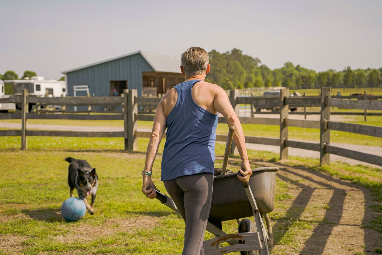 根據她的蘋果手錶記錄,朗達每天至少步行5英里。她還會為西部和英式馬術表演訓練馬匹。為了鍛鍊協調性,她會在農場裏騎在馬背上射箭。