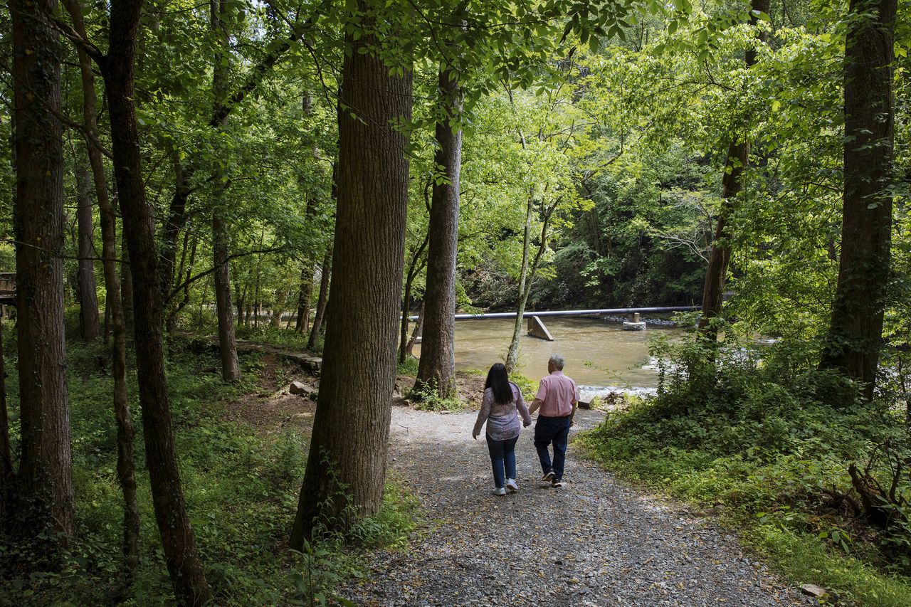 塞斯·斯特恩和勞裏·謝弗·斯特恩在佐治亞州桑迪斯普林斯新家附近的公園散步。### 確診後的決定