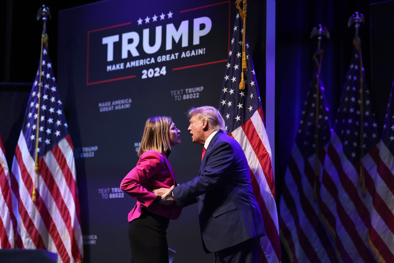前總統唐納德·特朗普與愛荷華州州長金·雷諾茲,攝於他三月份參加愛荷華州達文波特活動時。圖片來源:斯科特·奧爾森/蓋蒂圖片社愛荷華州州長已明確表示,她無意在黨團會議前表態支持任何候選人。相反,她正利用自身影響力為玉米乙醇等本州議題遊説,同時積累政治資本。