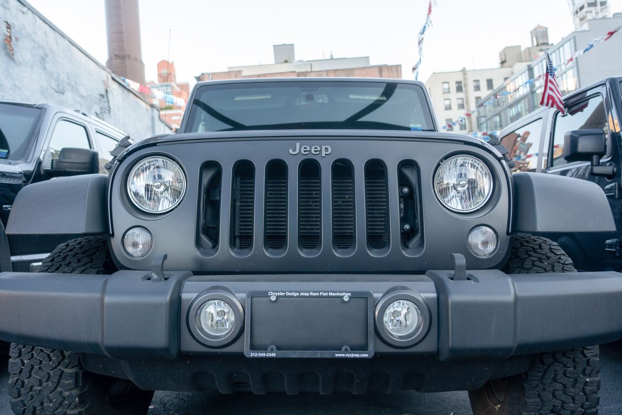 曼哈頓上西區一家克萊斯勒經銷店內停放的吉普牧馬人汽車。圖片來源:Ron Adar/Zuma Press刊載於2023年5月30日印刷版,標題為《若你鍾情你的吉普……》