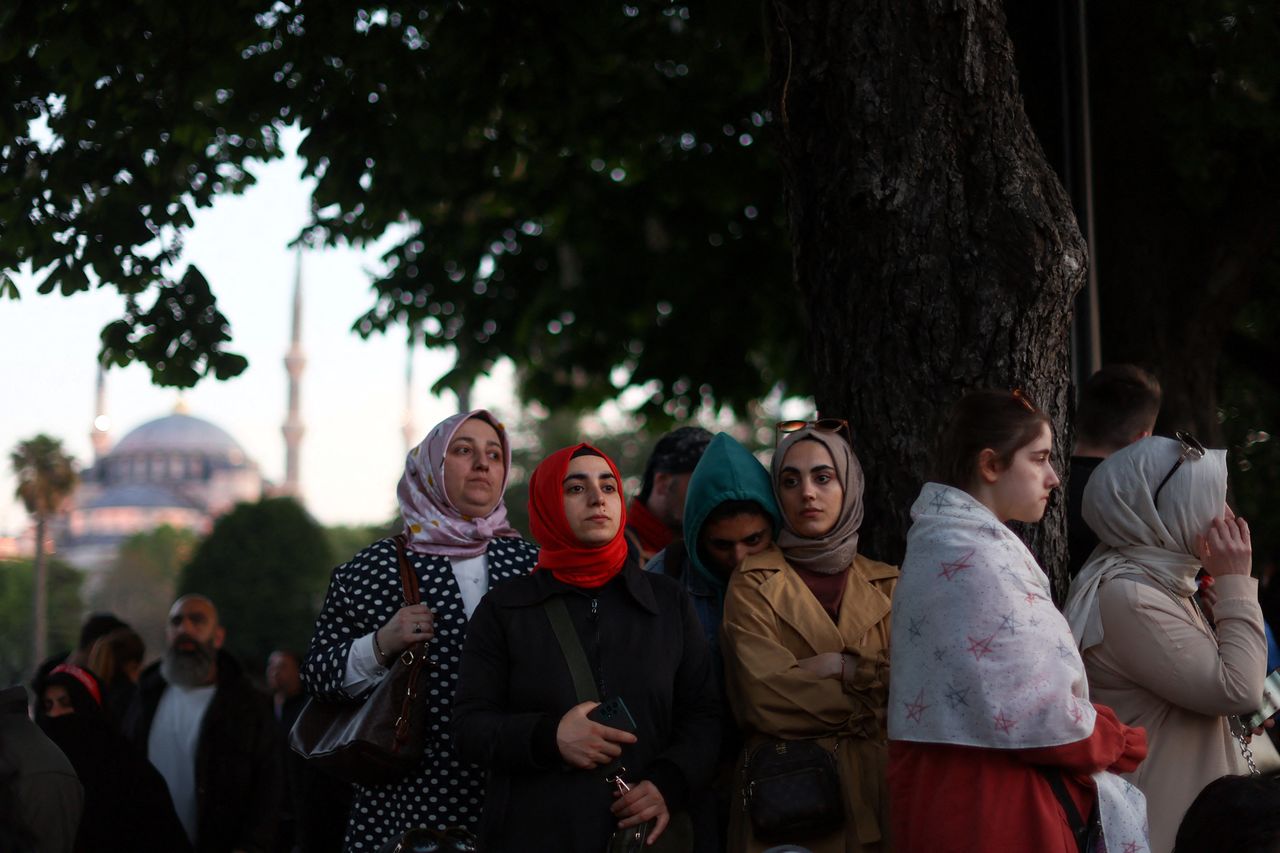 人們聚集在伊斯坦布爾的聖索菲亞大教堂外。照片:漢娜·麥凱/路透社—埃爾萬·基維爾奇姆對本文亦有貢獻。