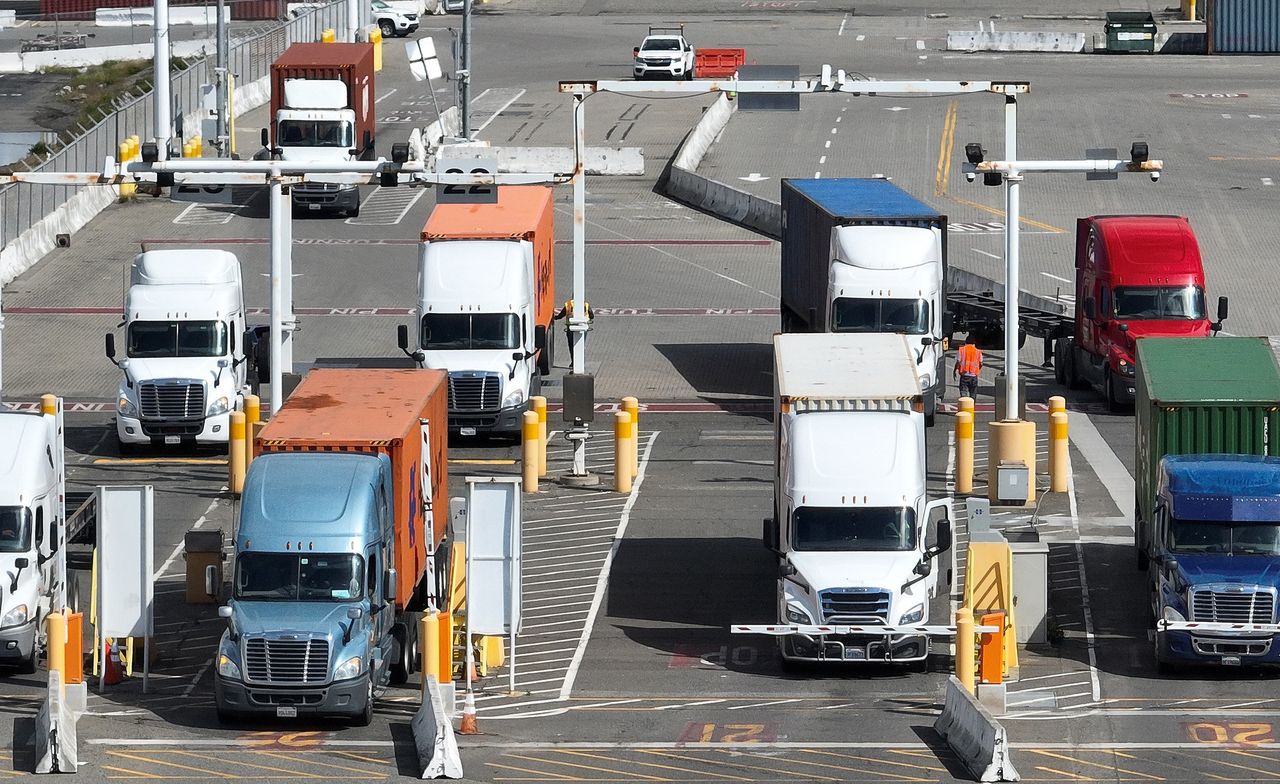 奧克蘭港的卡車。港口卡車運輸業務是加州清潔卡車計劃的目標。圖片來源:Justin Sullivan/Getty Images電動車充電初創企業正競相從加州推動卡車車隊電氣化的行動中獲利。