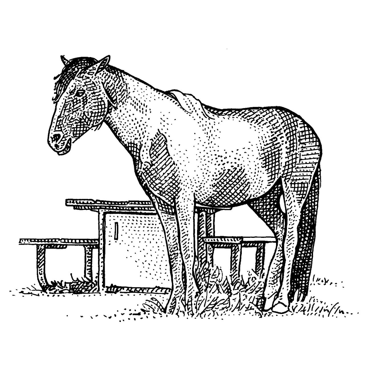 看好你的食物!本月一匹馬在露營地附近徘徊。