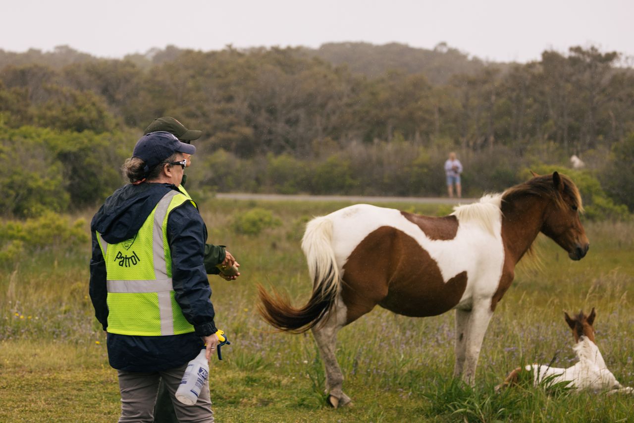 利布開玩笑説,他的背心上應該寫上"人羣巡邏隊"。如今,一些尋求自拍的遊客會過於接近約80匹野馬——這些馬匹許多都擁有飄逸的鬃毛和白色、棕色或棕褐色的皮毛,它們以公園馬里蘭州一側為家。儘管有無數警告説馬匹會抓住一切機會吃掉所有食物殘渣,仍有人給它們投餵可能有害的食物,或隨意放置自己的食物。