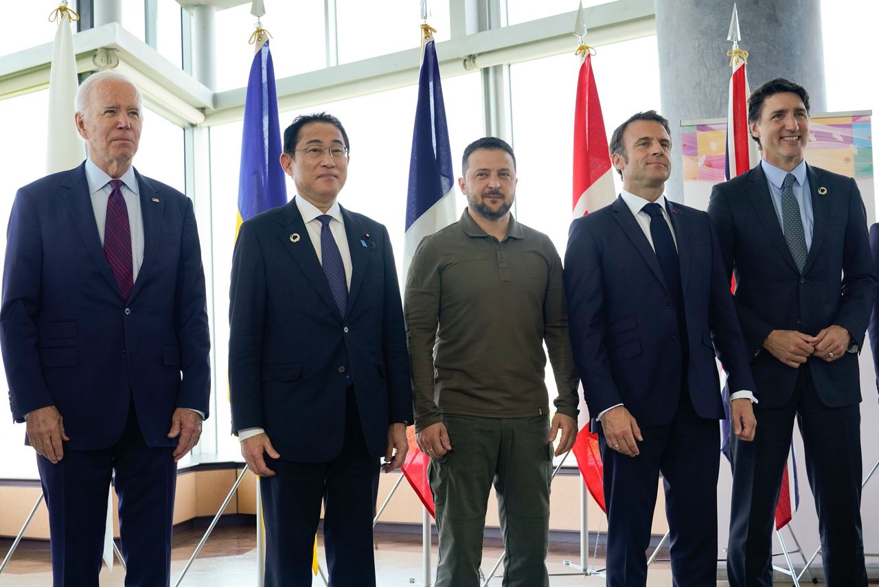 身着綠色服裝的烏克蘭總統弗拉基米爾·澤連斯基上週在日本參加了七國集團峯會,與各國領導人會晤。圖片來源:蘇珊·沃爾什/美聯社一位參與討論的官員表示,他們希望沙特王儲穆罕默德·本·薩勒曼和印度總理納倫德拉·莫迪能夠出席,但對習近平的出席則不太確定。