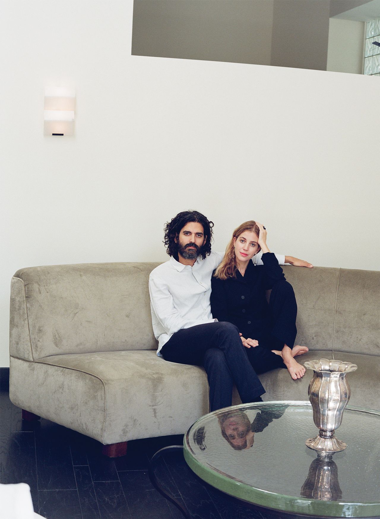 過去七年裏,洛杉磯珠寶設計師蘇菲·布海與她的CEO丈夫喬希·薩斯曼(下圖)在地下室經營着她的同名品牌。“有了孩子和各種事情,簡直瘋了,”她説。為了分隔工作與生活,兩人在洛斯費利茲找到一棟後現代住宅,並受1920年代巴黎工作室啓發,將三層空間改造為預約制展廳(一樓)與生產設計區(樓上)。布海與Formative Modern的加布裏埃拉·羅薩萊斯合作設計了沙龍風格 interiors,陳列了梅爾基奧雷·貝加、帕斯卡爾·穆爾格、勒內·德拉萬和西爾維婭·斯塔夫的作品。